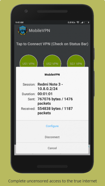 移動VPN是免費的應用程序,以保護您的隱私,防止跟踪,取消阻止網站,觀看視頻和電影,保護WiFi熱點安全和免費使用和優質帶寬。一鍵連接vpn。使用OpenVPN協議(UDP / TCP)加密數據。無需註冊或配置。移動VPN支持Wi-Fi,5G,4G,3G,速度非常快的服務器以及遍布全球的多個位置。