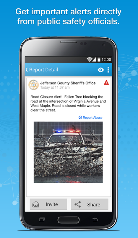 •“報告!”,您可以為社區的安全作出貢獻。分享犯罪技巧,交通警示,斷電源,倒下的樹木......甚至丟失的寵物!相關照片/視頻添加到每個報告。