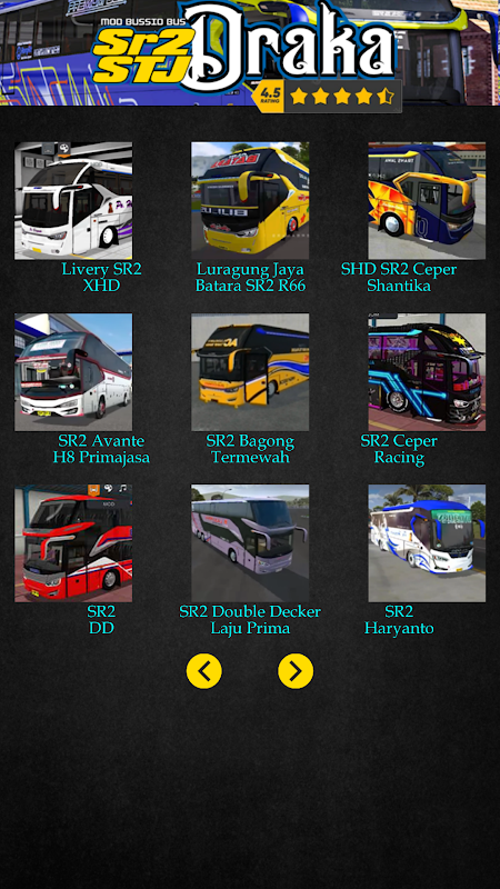 除了 STJ 巴士外,該應用程式還具有最新的完整高清印尼巴士模擬器塗裝。您可以玩的選擇有很多。首先當然是SR2bussid總線mod合集。我們提供的一些模型包括: