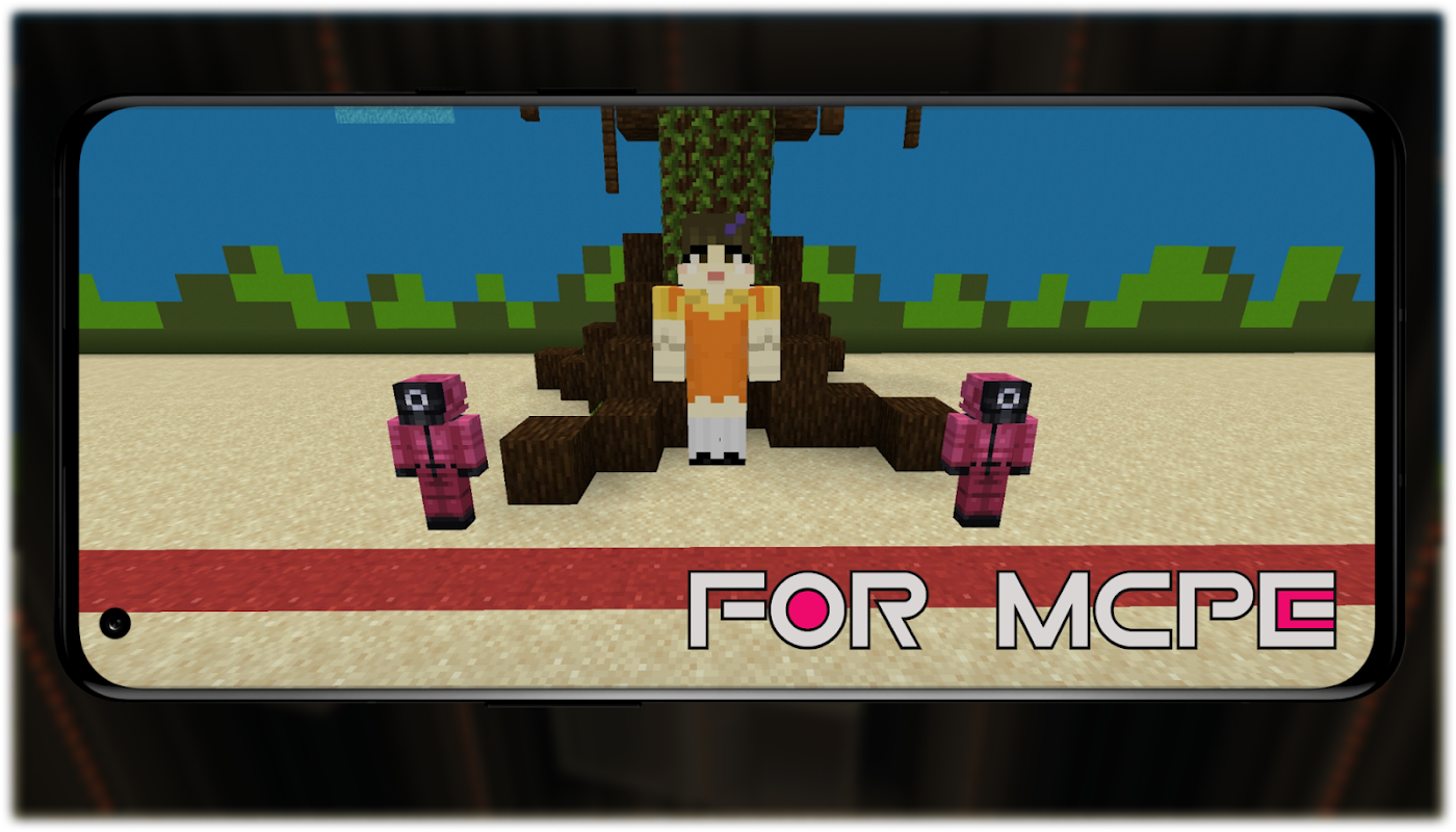 This app will allow you to bring the squid game mods to minecraft. There are a lot of nice addons which you'll be able to install easily in this app. We provide you the top collection squid game skins for mcpe, including player and red guards (and more) and survival maps. Are you ready to play?