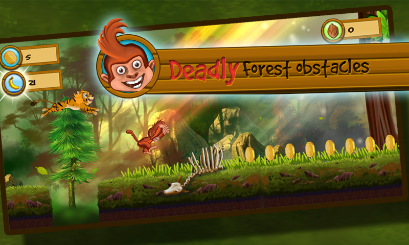Collect Bananas, Coconuts and Coins to make your survival easier. Bananas give you energy. Dropping Coconuts on tigers earn you some extra coins. And finally Coins help you buy some amazing stuff that further eases the gameplay.