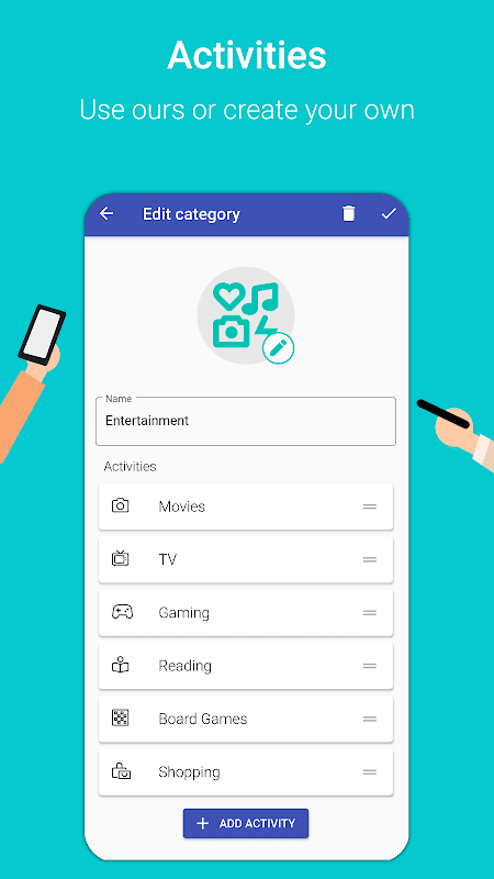 Moody Journal中的所有內容都是可定制的。您可以更改自己的心情,活動,顏色,圖標等等。只需將其更改為一個位置,心情跟踪器就會在任何地方進行更新。
