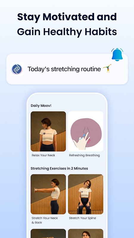 參加 MoovBuddy 由 醫生 和 物理治療師準備的個性化鍛煉。 鍛煉以固定姿勢並通過快速鍛煉緩解疼痛適用於背部和頸部及其他身體部位。通過力量和伸展訓練提高您的健身水平。獲取每日人體工學技巧、健康建議和簡短練習!通過呼吸練習改善您的心理健康並減少焦慮和壓力。與 MoovBuddy 一起鍛煉,通過 MoovBuddy 將健身和健康帶入您的家庭和辦公室。立即下載以獲得獨特的鍛煉體驗!