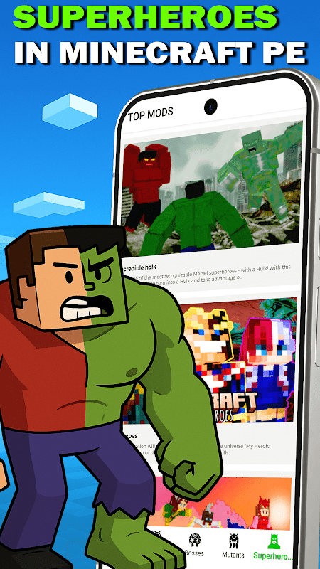 除了變形和怪物內容外,該應用程式還包含精選的超級英雄模組。這些外掛引入了受熱門英雄啟發的角色,並配有主題裝備、特效和視覺效果。雖然並非核心重點,但它們提供了一些有趣的附加功能,與整個模組合二為一。