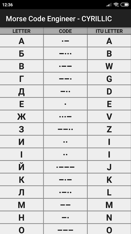 - 密碼本 - 顯示帶有字母及其莫爾斯電碼的選定密碼本