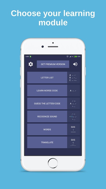 - 使用不同的學習模式學習摩爾斯電碼,使用字母頻率和間隔重複來幫助您學習。