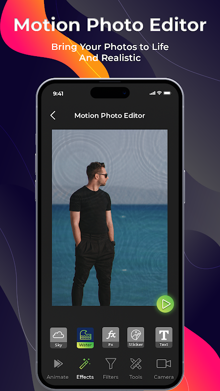 Make fabulous live photos, live wallpapers & gifs with animation effects using Moving picture 3d photo editor & video motion editor with music. Add amazing animation effects, including 180+ dynamic sky replacement, 200+ live 3d stickers, as well as 150+ popular 3d filter and overlays. Particle dispersion, glitch arts and more.