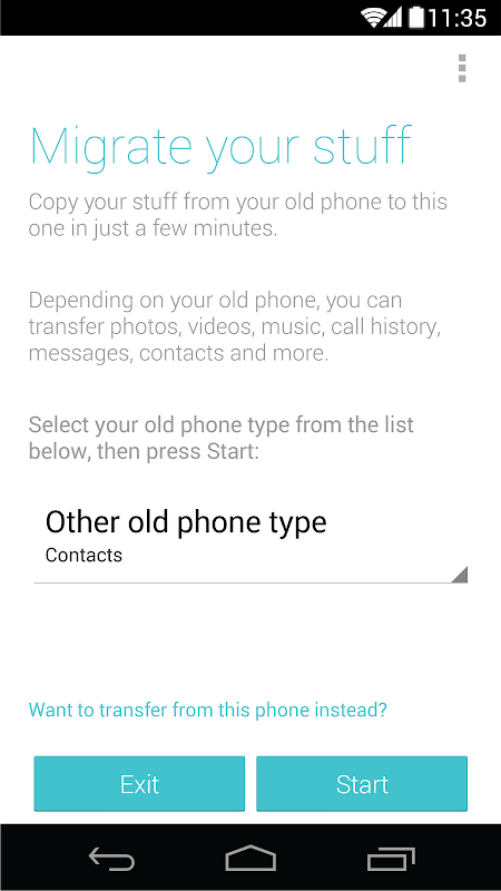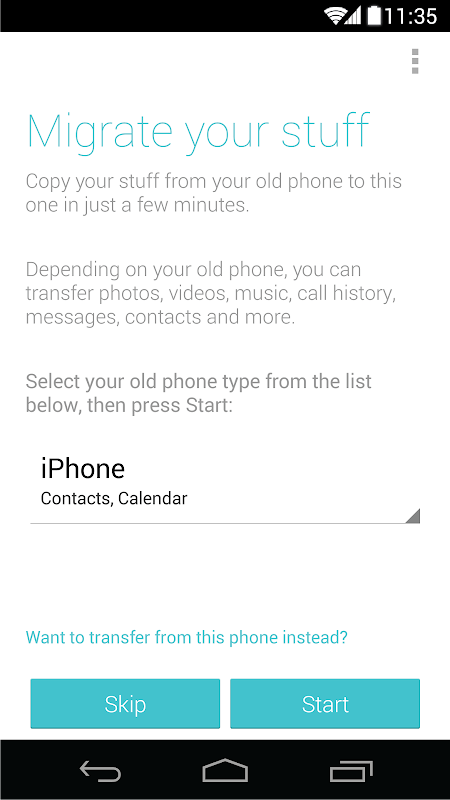 在新的摩托罗拉 Android 手机上,从“迁移”的第一个屏幕内选择“其他”,然后按照说明将新旧手机配对。