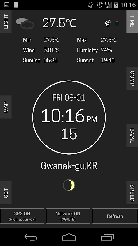 ☆★此應用程序提供手錶,指南針,晴雨表/高度計,車速表,閃光燈,月相和天氣信息的功能。