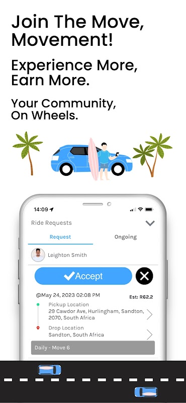 告別現金處理難題;我們的平台提供無縫的無現金服務,保證您每次旅行都能獲得收入。通過 Move 更好地連接,賺取更多,並自信地駕駛。