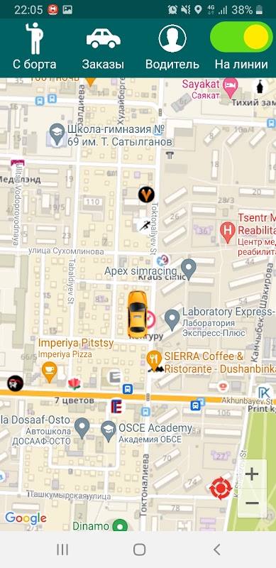 В приложении водители обрабатывают заказ поступающих от диспетчерской MTaxi и клиентского приложения в городе Бишкек