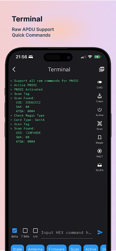 MTools BLE 應用程式是一款適用於 PN532 BLE、PCR532、ChameleonUltra、ChameleonUltra 開發套件、ChameleonLite 和 Pixl.js 設備的一體化應用程式。它支援使用 APDU 命令讀寫 Mifare Classic 1K、Mifare Classic 4K、Mifare Ultralight、Mifare Ultralight C、NTAG203、NTAG213、NTAG215、NTAG216、Mifare Desfire、Mifare Plus 等 NFC 標籤。
