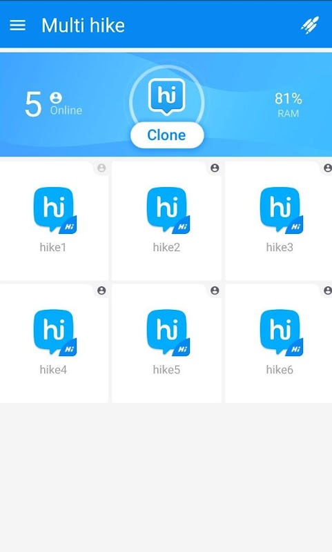 Multi hike helps clone and run multiple Hike accounts online simultaneously on one phone to improve your work efficiency and have a colorful life. It focuses on Hike.