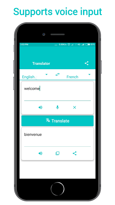 This Translator is the most powerful translation tool on your Android Device. Translate any sentence or phrase into any destination language, and enjoy a set of useful add-on features such as text-to-speech, and integrated social media support.