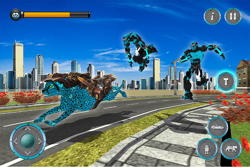 體驗未來機器人獵豹改造遊戲和充滿活力的機器人動物城市模擬。在玩這種極端的未來主義汽車變形獵豹機器人遊戲的同時,在你的導彈襲擊的幫助下駕駛你最喜歡的巨型憤怒的汽車並在大城市摧毀敵人的汽車。