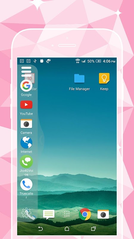 It is just a side launcher with your favorite applications. Shortcuts of your selected favorite applications