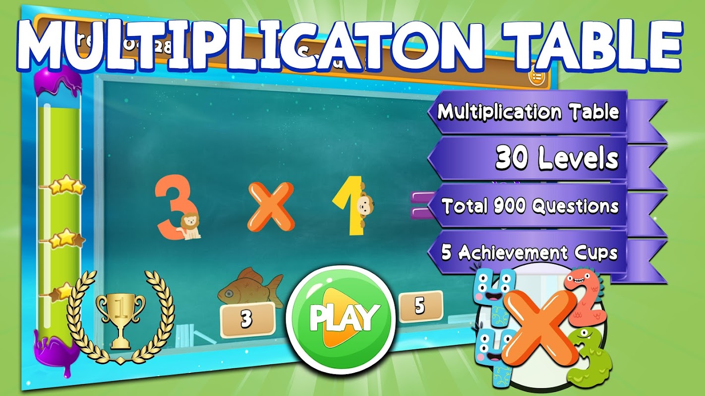 世界上最有趣的乘法表(數學)遊戲恭候您的光臨。您可以通過立即下載此遊戲開始遊戲,這將提高玩家的乘法口訣,並使其能夠執行快速乘法運算。