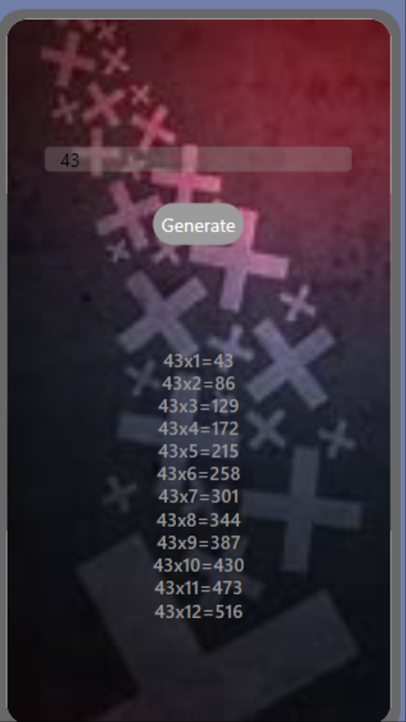 開啟應用程式時,會說明為什麼您必須學習乘法表,然後按一下「執行」按鈕時,您可以輸入一個數字,它將顯示該數字與 12 的乘積。