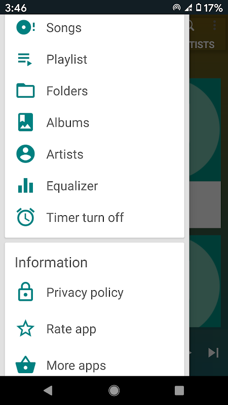 * Available section: all song, artist, album, genre, music folders, favorite, saved lyrics.