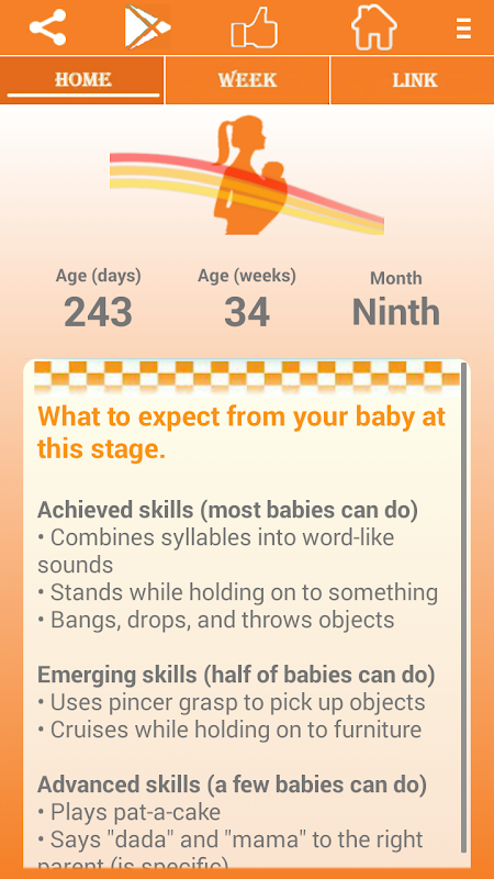 "My Baby and I" application guides you on weekly and monthly growth for baby. Includes month-to-month guide for the crucial first year and also tips on common health problem for baby. our app will also talk to you about your life at this stage and what to do during the first year of your baby.