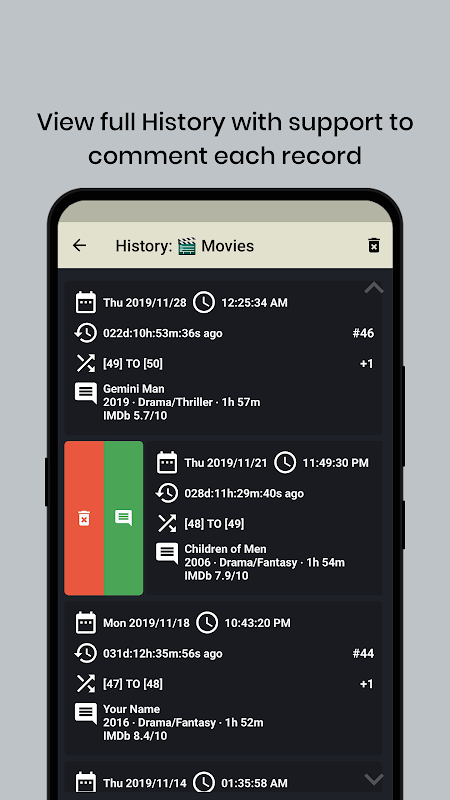 • 查看您在計數器上執行的每項操作的歷史記錄。