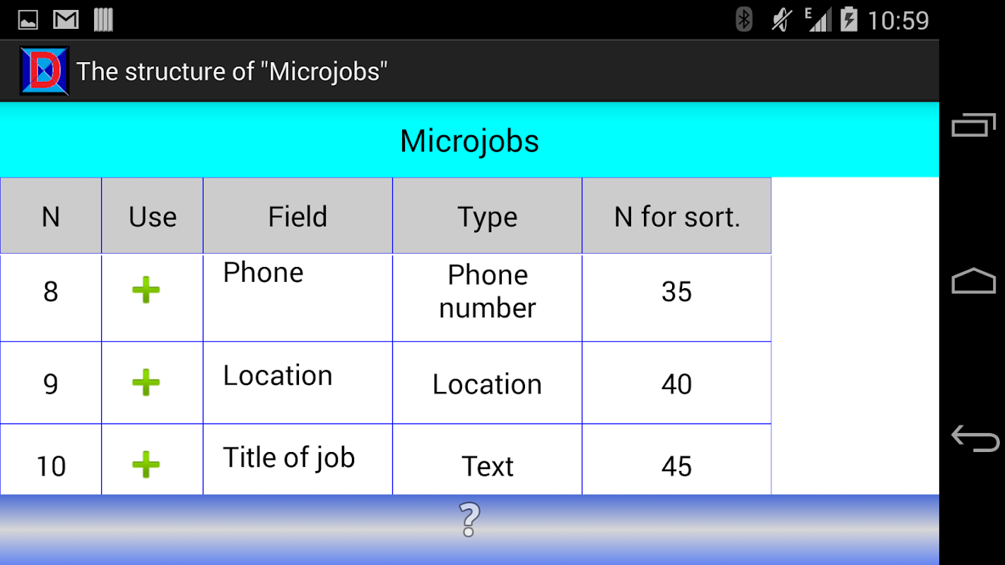 This application makes it easy to create your own databases; each of them has its own set of fields of various types (text, number, phone number, photo, location, etc.)