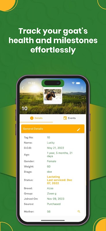 為每隻山羊建立詳細的檔案。追蹤品種、標籤編號、體重、健康史、繁殖、懷孕、生育等資訊——所有這些都在一個地方。