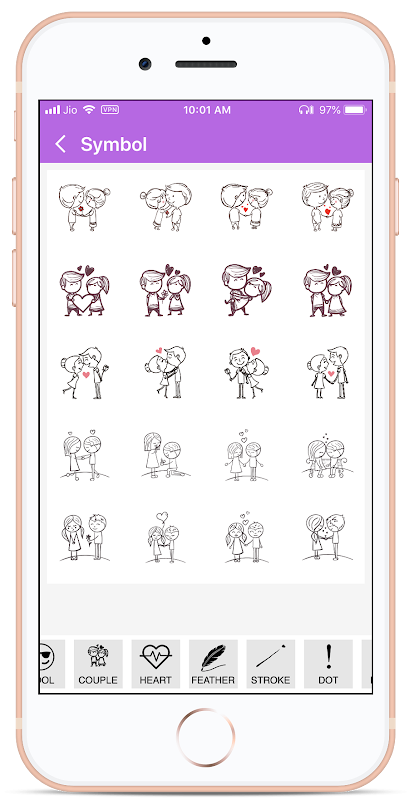 -Add snap cool, hearts, couple, feathers, Strokes emojis and text art to make a cool art picture
