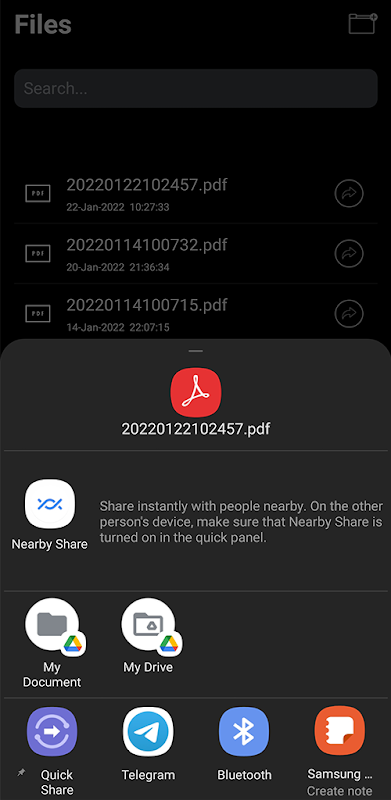 我的掃描儀是 PDF 文件的文檔掃描。您可以掃描您的文檔並在 Telegram、電子郵件、Line、Google Drive 和其他應用程序等社交媒體上分享給任何人。