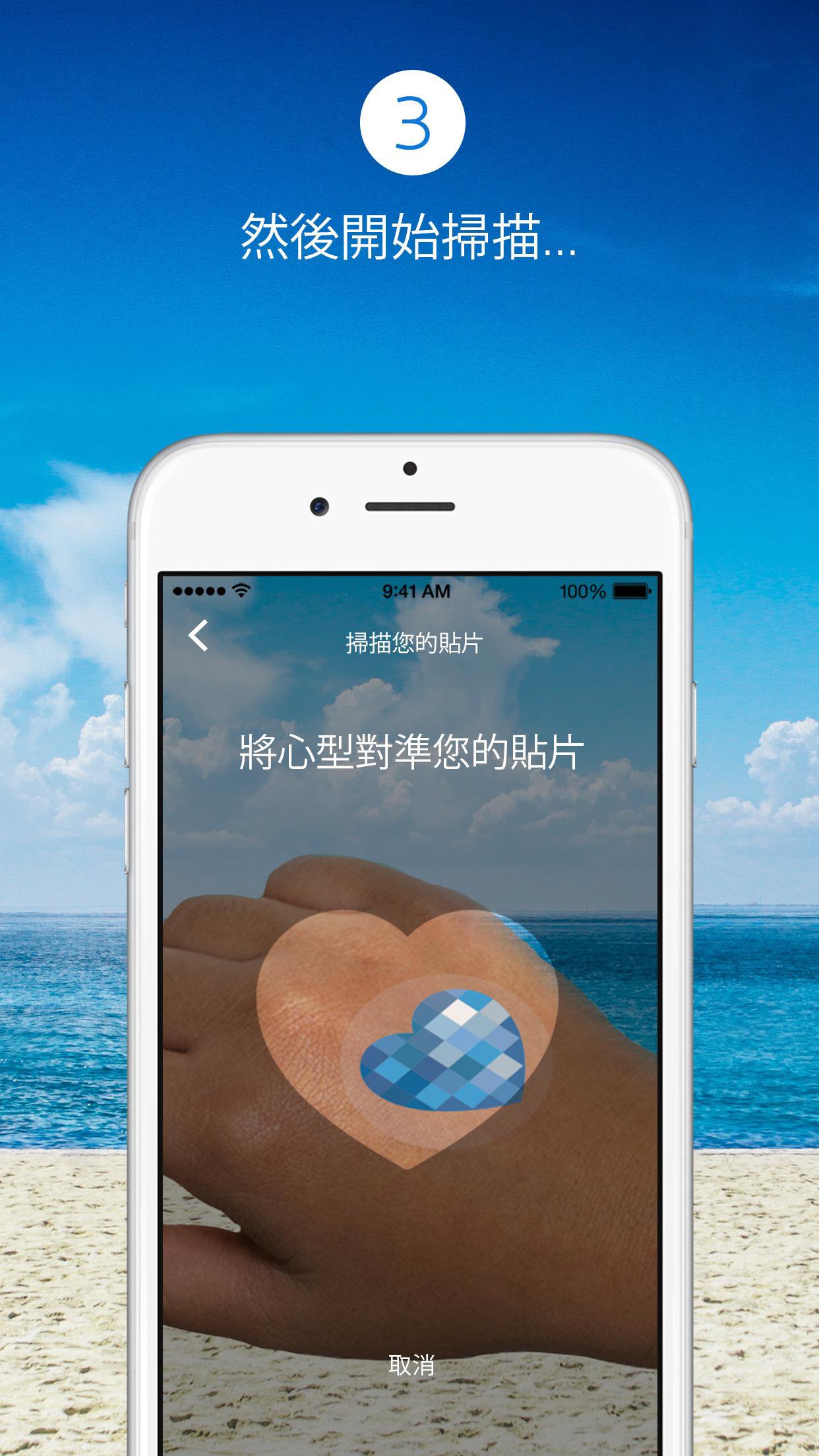 MY UV PATCH:具高科技智能創新技術-是您可穿戴式的安全防曬教練。 UV智慧偵測貼片為彷若第二層肌膚的電子感應設備,採用含有紫外光感應變色染料的肌膚黏著材料,會根據您暴露與接收紫外線的程度改變顏色。您可以輕易黏貼、剝除貼片,幾乎感受不到它的存在! 極輕薄、防水防汗,敏感性肌膚也可使用!您可以把它黏貼於手背或任何可用手機掃描到的肌膚部位。使用時您依舊可以自在睡眠、洗澡淋浴,甚至游泳戲水,塗抹防曬品在貼片上也沒問題!舒適、耐受性高,可即時監控肌膚紫外線接收狀況。