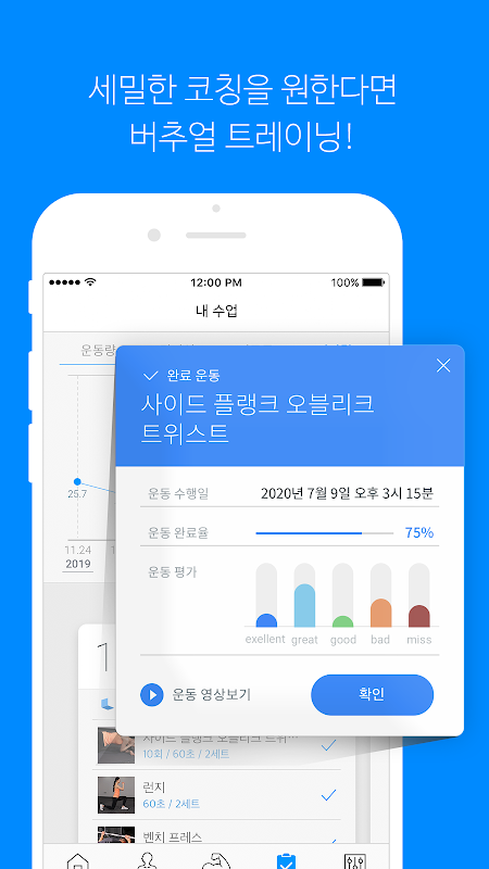 可以檢查帶有教練的PT&Home訓練,基於AI的虛擬訓練課程歷史以及根據課程的身體變化。