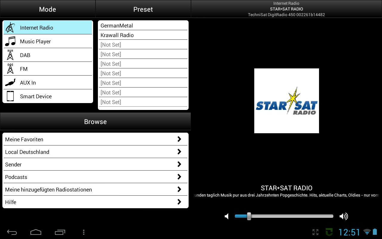 MyDigitRadio is a remote control app for DigitRadio 400 and DigitRadio 450 manufactured by TechniSat.