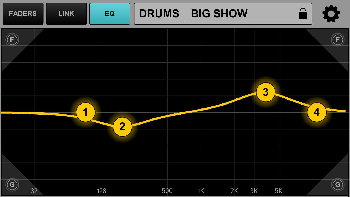 音樂家可以調整輸入電平,靜音,平移,將混音後均衡器和鏈接通道應用於自定義的單個推子組,而不會影響樂隊或FOH聲音。