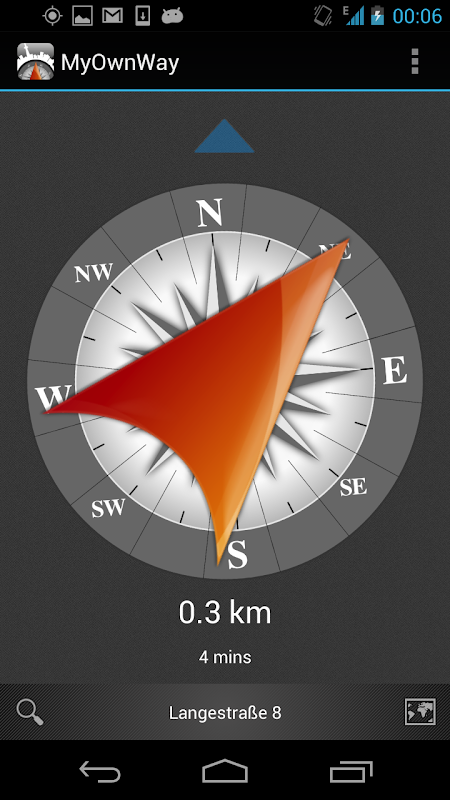 Find your way by following the arrow and keep an eye on distance, estimated time of travel and a map of you and your destination. Leave turn-by-turn for people that would much rather walk by the highway than take the side street with the beautiful roses.