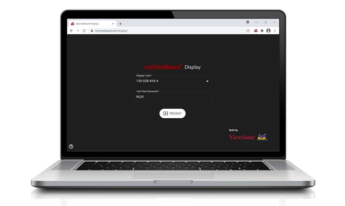 當 myViewBoard™ 無線投影在主持端安裝完畢,用戶端只需要開啟瀏覽器並前往 myviewboard.com/display 即可開始無線分享他們的畫面,不需要再安裝任何軟體,也不需要煩惱無線接收器,讓演示體驗更加順暢。