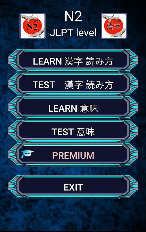 該應用程序可以幫助用戶為N2準備考試。它側重於漢字的化合物 - 閱讀和意義。它由多個測驗。雖然經常練習回答測驗,用戶逐漸記住如何讀漢字化合物及其翻譯。