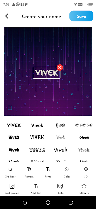 Name Shadow Editor provides you famous unique 3D fonts and Create beautiful name arts with attractive backgrounds, add beautiful stickers or emojis.