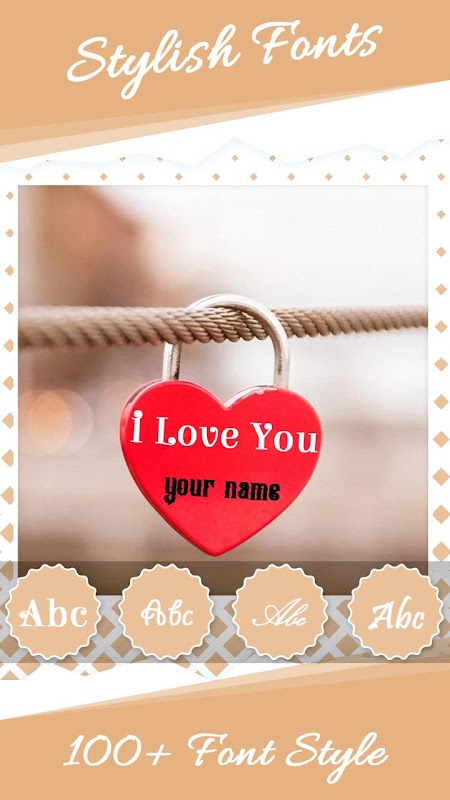 Name Photo Editor is a free app for writing name art on photo app. You can write your name on photo with use of our latest stylish name maker app 2017. Name Art Photo Editor provides text editor in style with a background like name on love photo, name on locket, text on lock screen and also write name on birthday cake. Name Art or Fingertip Art is working as a Focus n Filter – Name Art Photo Editor to create a name/text with stylist fonts which is becoming your signature. And these signatures treat you as a name artist with the use of name style text art.