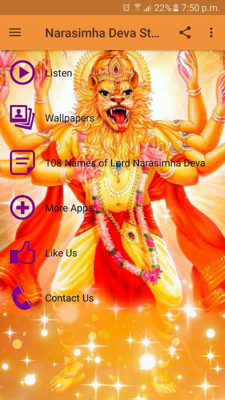 由禱告(Stotrams),壁紙和主納拉辛哈·德瓦的108名的。