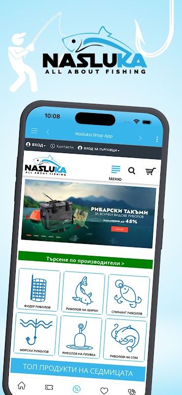 Nasluka 的行動應用程式提供各種狩獵和釣魚設備 - 竿、捲軸、線、鉤、人工誘餌、各種配件以及狩獵和釣魚之旅、露營和徒步旅行所需的任何附加設備。