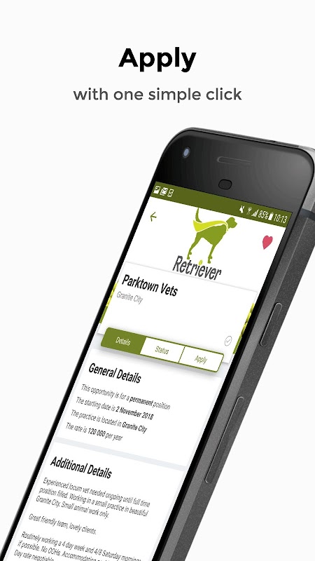 Whether you are a veterinarian, veterinary nurse, receptionist or students, you can download the free Retriever app and easily browse and apply for veterinary, vet tech, veterinary nurse or practice manager job openings. Complete your profile and you’ll automatically be matched with jobs that you qualify for.
