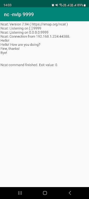 如果您以前從未使用過 nc、ncat(或任何其他 netcat 實現),很可能您不需要這個應用程序,但為了給您一個想法,使用上面的示例您可以從計算機遠程控制您的手機並遠程控制如果您知道自己在做什麼,則可以從手機連接到計算機。