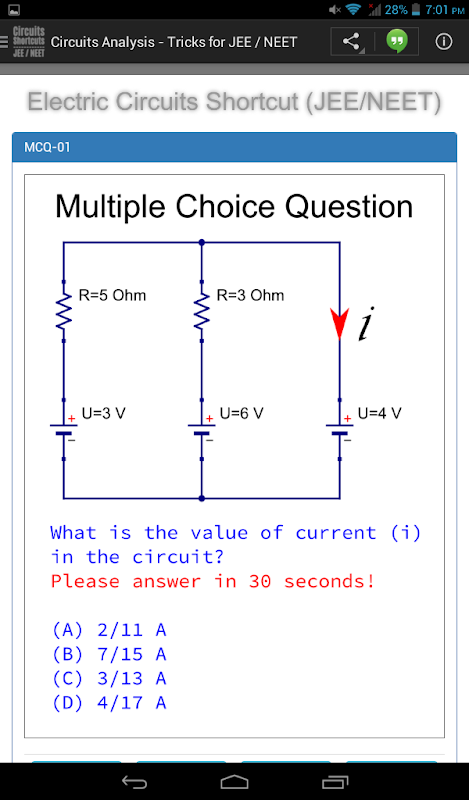 This app details the shortcut trick that can be employed to attempt questions about Circuit Analysis for NEET and JEE.