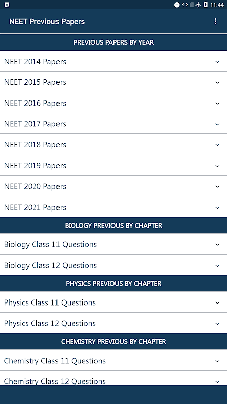 這個應用程式包含 NEET 以前的論文、模型練習論文和章節明智的問題。