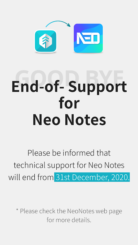 【Neo Note服務支持結束】請於2020年12月31日前將您的筆跡數據傳輸至手機APP‘Neo Studio’。我們將盡最大努力安全地移動您的數據,直到服務支持結束。