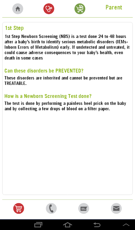 Now, order a test or request a report easily from the NeoGen App. The App allows parents to get information on the Newborn Screening (NBS) test and panels offered. It provides information for physicians regarding screening panels appropriate for sick infants, request screening kits and order missing reports. Additionally, it provides information on sample collection guidelines, lab processing cut off times and payment details.