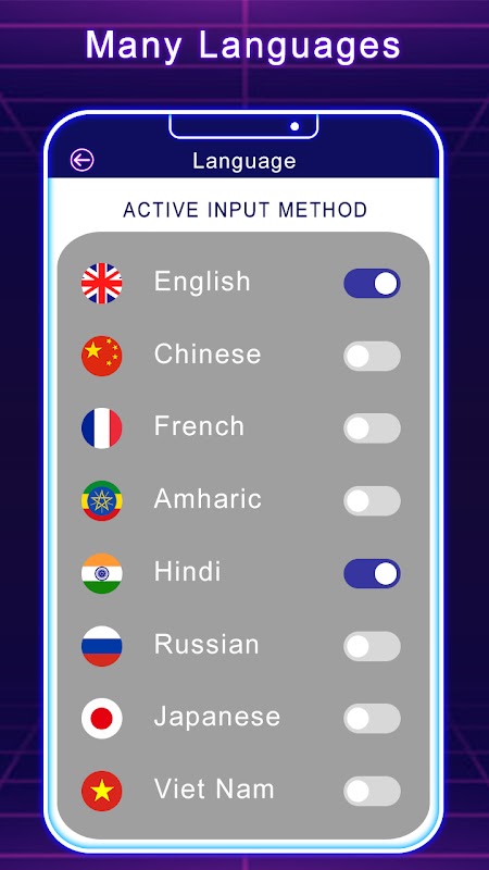 Change default keyboard with lighting LED keyboard Neon LED Keyboard application.