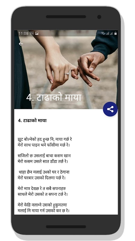 您可以閱讀最佳尼泊爾 Gajal Muktak、尼泊爾 Sahitya、尼泊爾 Kabita、尼泊爾笑話、尼泊爾詩歌、尼泊爾 muktak 等。