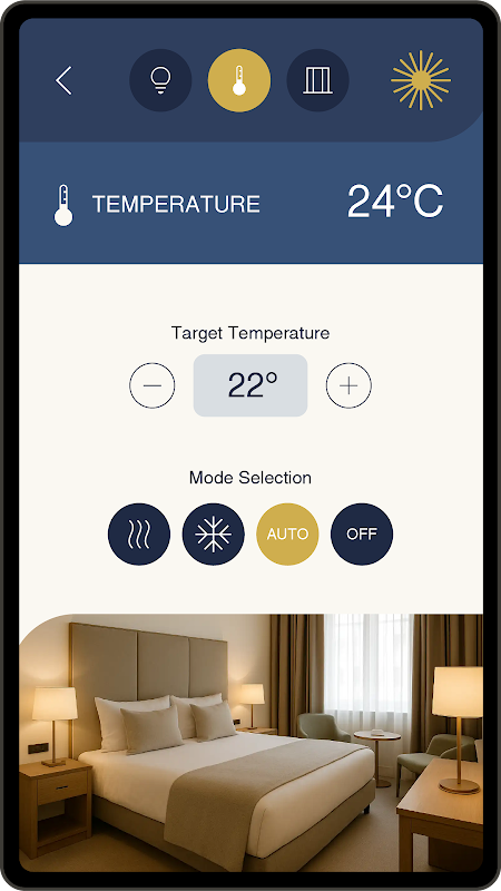 在您的智慧型手機或平板電腦上視覺化和控制您的飯店房間。