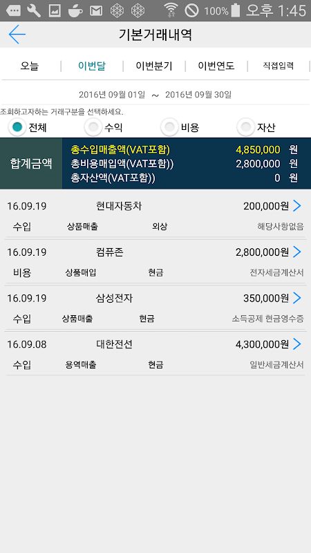 기존의 간편장부앱의 대부분 기능(매출입,자산,통계,미수,데이타통계,국세청 종합소득세 신고포맷) 을 포함하고 있으며
